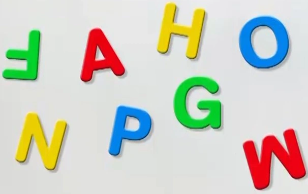 The name of which fruit can be displayed using some of these fridge magnets?